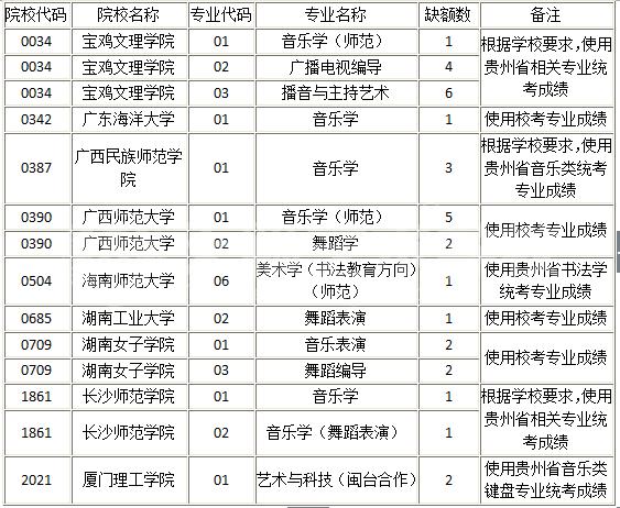 2016贵州艺术c(非美术类Q第二批本科院校补报志愿说明
