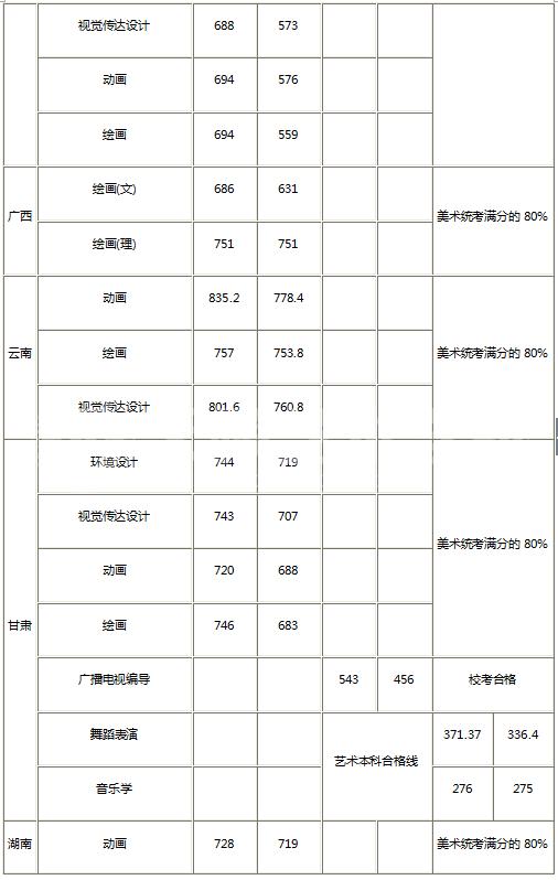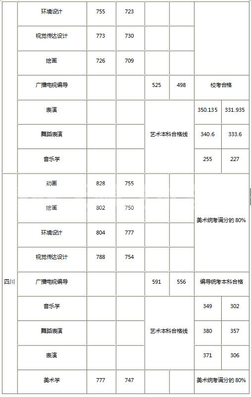 2016四川大学艺术cLU分省分专业通过分数U?/h1>