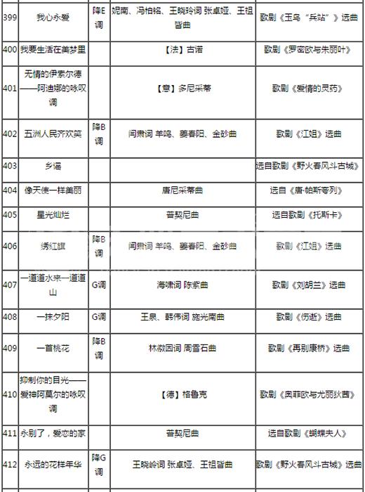 1銆佷粠2017騫村紑濮嬶紝闊充箰瀛︾被澹頒箰縐戠洰鑰冭瘯鐨勬紨鍞辨洸鐩紝鐢辮冪敓鍦ㄦ垜闄㈠叕甯冪殑銆?017騫村畞澶忚壓鏈粺鑰冮煶涔愮被澹頒箰鏇茬洰搴撱嬪唴浠婚変笁棣栨瓕鏇插茍鍦ㄩ珮鑰冩姤鍚嶆椂濉姤錛岃冭瘯鏃剁敱璁$畻鏈轟粠鑰冪敓濉姤鐨勪笁棣栨瓕鏇蹭腑闅忔満鎶藉彇鍏朵腑鐨勪竴棣栨瓕鏇詫紝鑰冪敓鏍規嵁鎶藉彇鏇茬洰鎵鏍囨敞鐨勮皟楂樼瓑瑕佹眰鍙傚姞鑰冭瘯婕斿敱銆備嬌鐢ㄥ0涔愭洸鐩簱澶栫殑鏇茬洰浠ュ強璁$畻鏈烘娊鍙栧鐨勫0涔愭洸鐩簱鏇茬洰鍙傚姞鑰冭瘯鐨勶紝鑰冭瘯鎴愮嘩鏃犳晥銆傝冭瘯鐜板満緇熶竴鎻愪緵閽㈢惔浼村錛岃冪敓涓嶈兘鑷甫浼村銆?