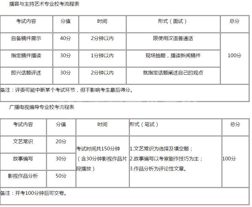 播音与主持艺术专业校考流E表