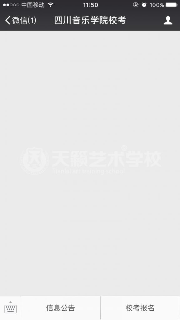 q入“四川音乐学院校考”微信公众号后,点击【信息公告】,可查看招生简章、报考须知、常见问题、考场规则{信息。点凅R校考报名】,q入校考报名系l进行注册、报名、交费等?