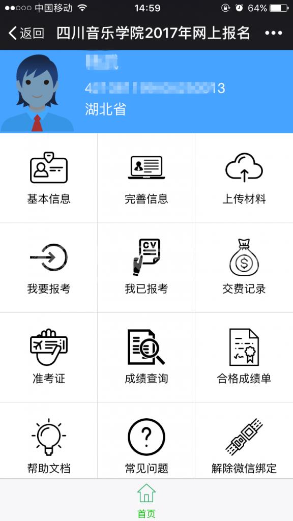 xq进入“四川音乐学院校考”微信公众号后,点击下方菜单“校考报名”即可进入报名系l。如Ҏ名流E不清楚Q请参阅报名pȝ中的“帮助文”,如对考点、专业、考试内容{有疑问Q请先参阅报名系l中的“常见问题”?