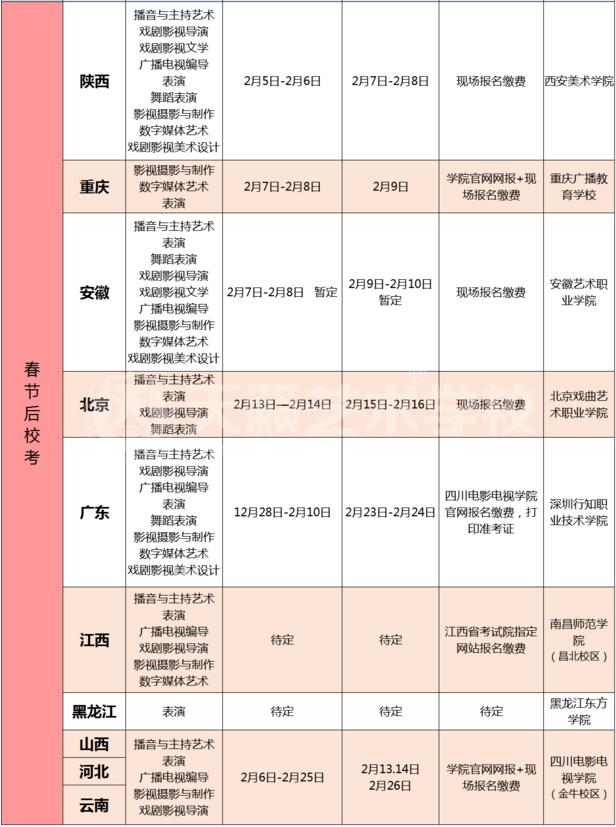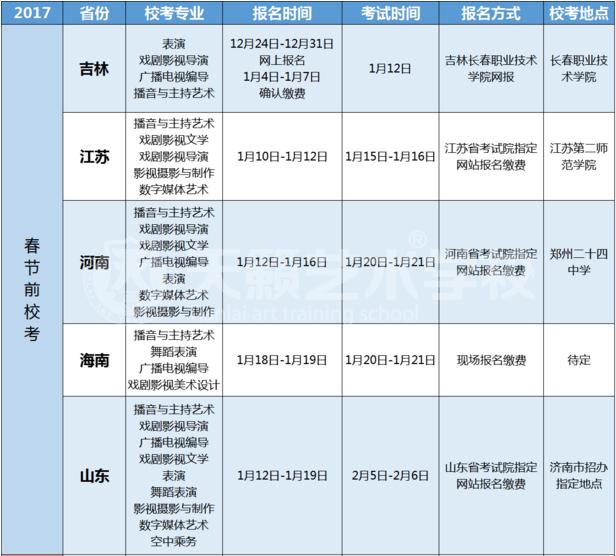 四川电媄电视学院2017q艺术专业校考报名考试旉及地点现已公布,各省市具体校考时间见下表?/span>
