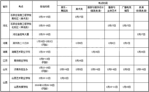 2017q艺术类专业省外招生考试地点及时?最后以考点准考证为准)