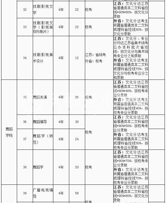 1、考生报考我校按专业分择优通过的专业,对于外省考试?或省U招?投的考生Q凡专业成W合格Q文化高考成l达所在省(自治区、直辖市)定的普通类前列Ҏ本科通过控制分数U,且前列志愿填报南京艺术学院的Q优先通过;考生报考我校按专业分择优通过的专业,对于江苏省考试院投的考生Q凡专业成W合格Q文化高考成l?卌文、数学、外语三门原始分(不含附加?与政{性奖励分、照ֈ之和)达江苏省普通类本一文科省控U?0%Q且前列志愿填报南京艺术学院的,优先通过?