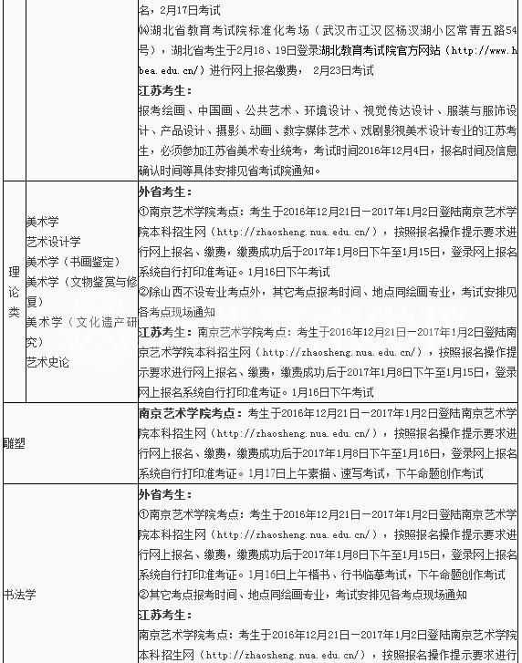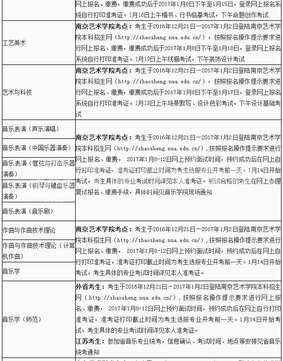 南艺校内考点|上报名、选报专业及网上缴Ҏ间截止至2017q???8:00Q逾期不予补报(现场不接受报名及现金~费)。考生|上认~费后不予退贏V预U面试时间截止至2017q??2?8:00Q报考需要预U面试考试旉专业的考生Q未在规定时间内q行|上预约考试旉Q对考生参加考试造成影响的,后果p生自行承担?