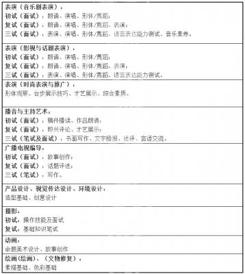在我校组l专业校考的省市Q若有相应专业省U统考,考生应在专业l考合格的基础上报考我校专业校考。我校认可省U专业统考成l的省市Q通过时专业成l以省专业l考成lؓ依据。各专业招生省市及专业考试cd见下表: