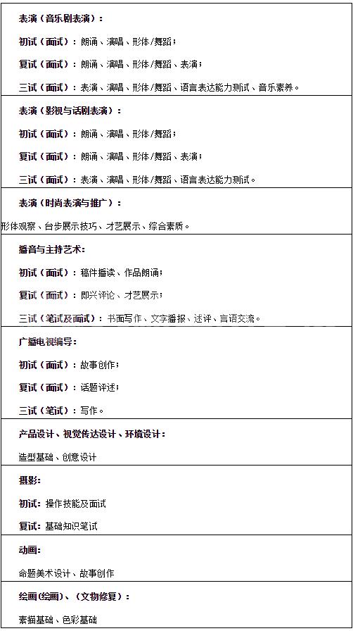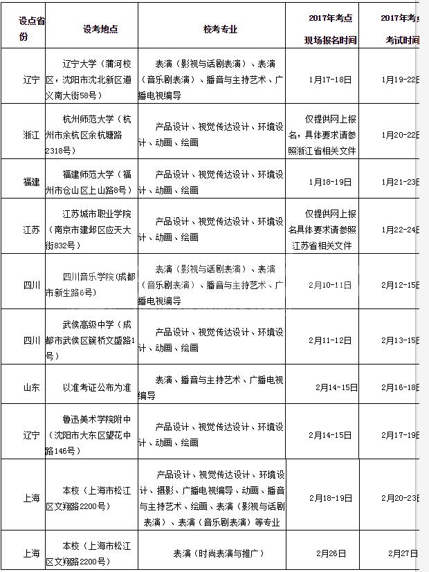 鎴戞牎2017騫村悇鎷涚敓涓撲笟涓紝鑹烘湳涓庣鎶銆佹暟瀛楀獟浣撹壓鏈佸伐鑹虹編鏈佹湇瑁呬笌鏈嶉グ璁捐銆侀洉濉戙佸叕鍏辮壓鏈笓涓氾紝闇鍙傚姞鎵鍦ㄧ渷甯傜編鏈被緇熻冿紝鎷涚敓闈㈠悜涓婃搗銆佹睙鑻忋佹禉姹熴佸畨寰姐佸北涓溿佹渤鍗椼佽窘瀹併侀粦榫欐睙銆佹渤鍖椼佹箹鍗椼佸洓宸濄佸箍涓溿佽吹宸炪佸悏鏋椼佹柊鐤嗙瓑鍏辮15涓渷甯?緇樼敾銆佷駭鍝佽璁°佽瑙変紶杈捐璁°佺幆澧冭璁°佸姩鐢匯佹憚褰便佸箍鎾數瑙嗙紪瀵箋佹挱闊充笌涓繪寔鑹烘湳銆佽〃婕斾笓涓?017騫村潎闇鍙傚姞鎴戞牎鏍¤冿紝闈㈠悜鍏ㄥ浗鍚勭渷甯傛嫑鐢熴傚鎵鍦ㄧ渷甯傛湁鐩稿叧緇熻冭姹傜殑錛岄渶鍦ㄤ笓涓氱被緇熻冨悎鏍肩殑鍩虹涓婏紝鍙傚姞鏍¤冦?