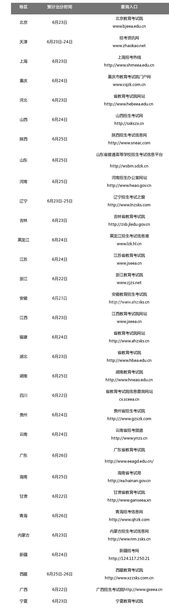 Z方便各地考生及家长及时获?017q高考成l,老师特别搜集整理?1省区市高考成l查询的旉及方式?