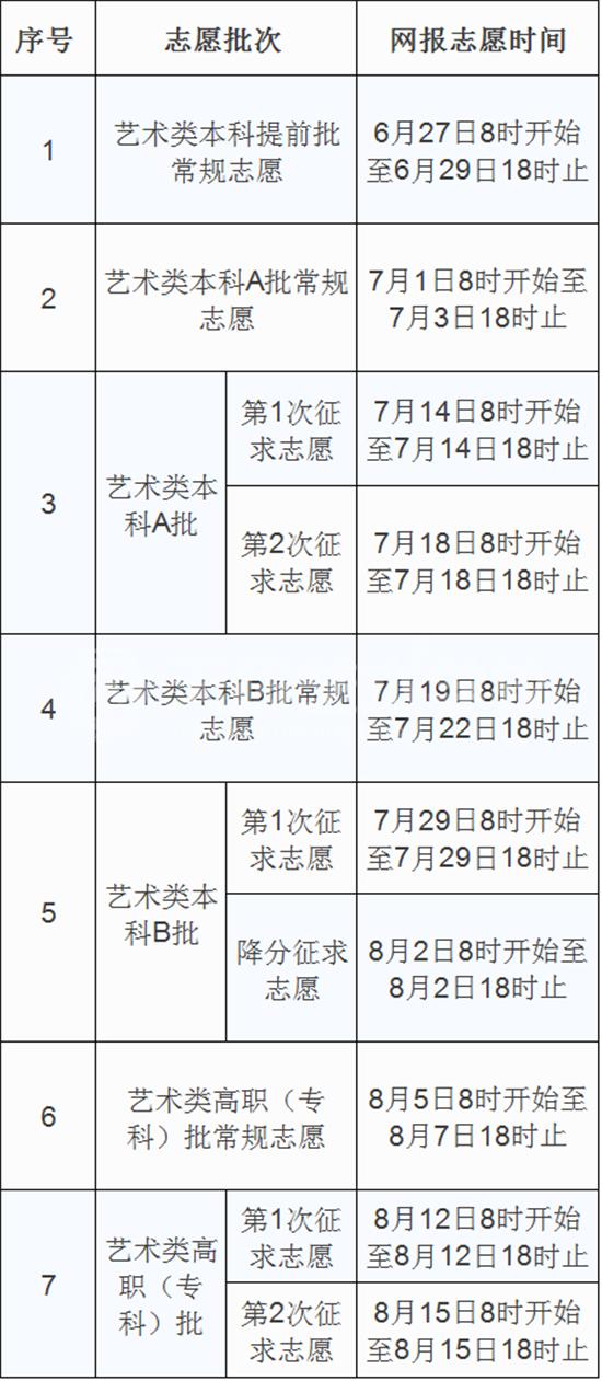 7?9日至7?1?2Ӟ考生填报高职(专科)Ҏ志愿(含高职提前批和高职批?。符合艺术类报考条件的考生Q填报艺术类高职(专科)Ҏ志愿(含A、B阶段);W合体育cL考条件的考生Q填报体育类高职(专科)Ҏ志愿?