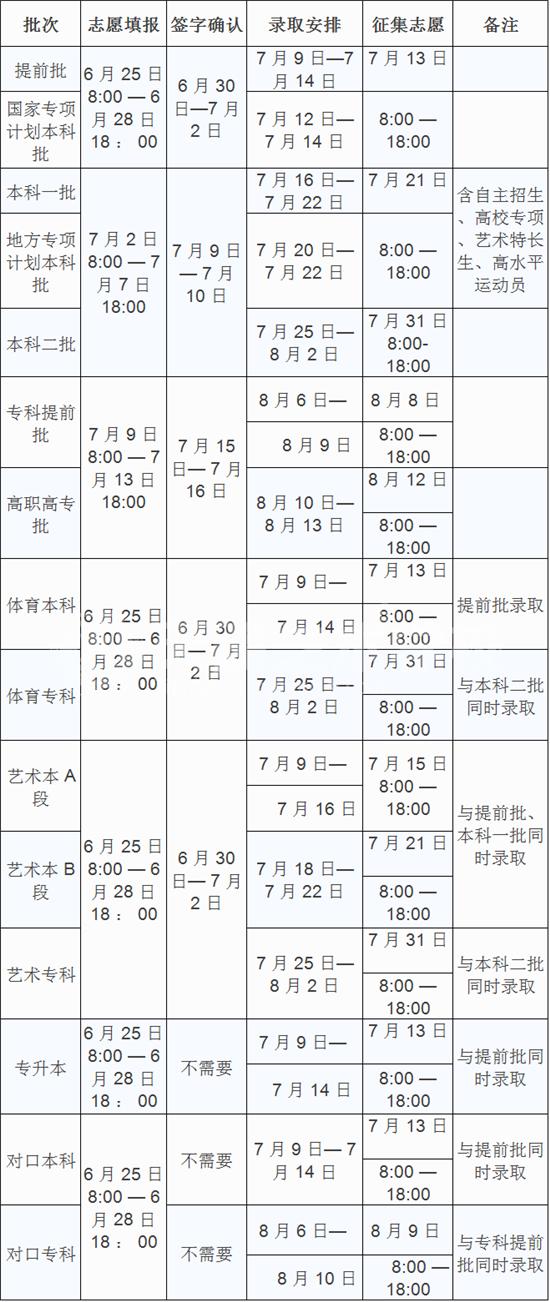 7?7日:高职高专批前列次|上填报志愿?