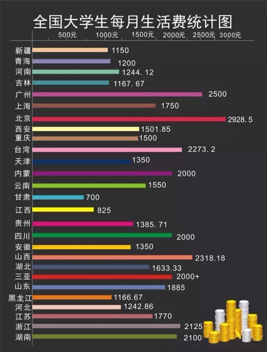 但城市消Ҏq不能盲目猜,一些西部城市的消费水^可能也比较高。各位家长可以提前了解下孩子大学所在城市的生活水^及消Ҏc?