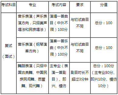 (5)舞蹈表演专业(只招中国古典舞、中国民族民间舞、芭蕾舞、现代舞)Q基本功试(柔韧性、翻转能力、弹跌力、技术技巧展C?。要求:素颜(不准化妆)Q女生盘发、着形体服大袜、Y底舞y鞋Q男生着舞蹈服、Y底鞋?