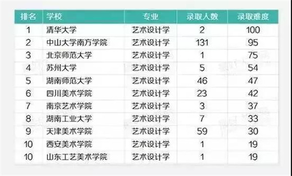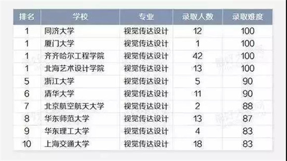 “视觉传䏀专业对高考分数要求最高的十所高校