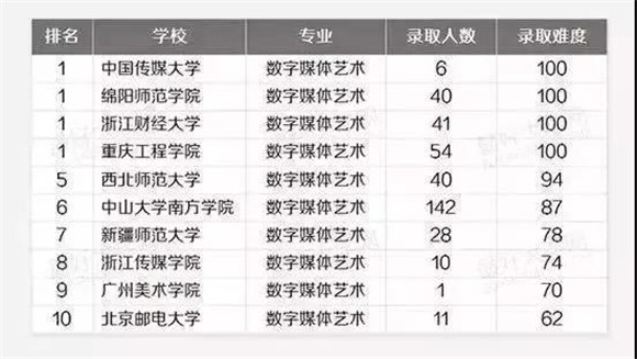 “数字媒体艺术”专业对高考分数要求最高的十所高校