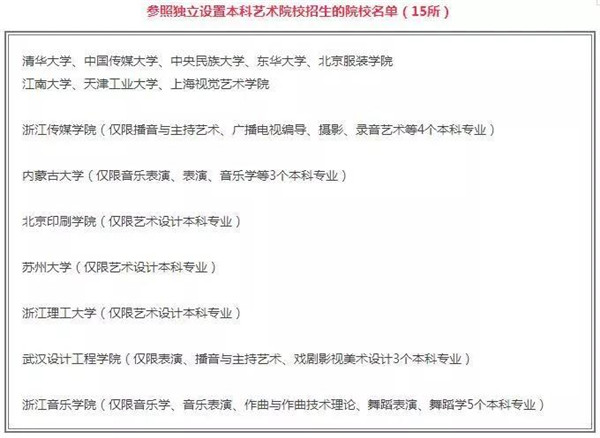 ׃工艺术学院、景德镇陶瓷大学、南京艺术学院、山东艺术学院、吉林艺术学院、解攑ֆ艺术学院、广西艺术学院、云南艺术学院、新疆艺术学院、北京电影学院、中国传媒大学、中央戏剧学院、中国戏曲学院、上h剧学院、北京舞y学院、四川音乐学院、沈阳音乐学院、浙江传媒学院、复旦大学上觉艺术学院等?