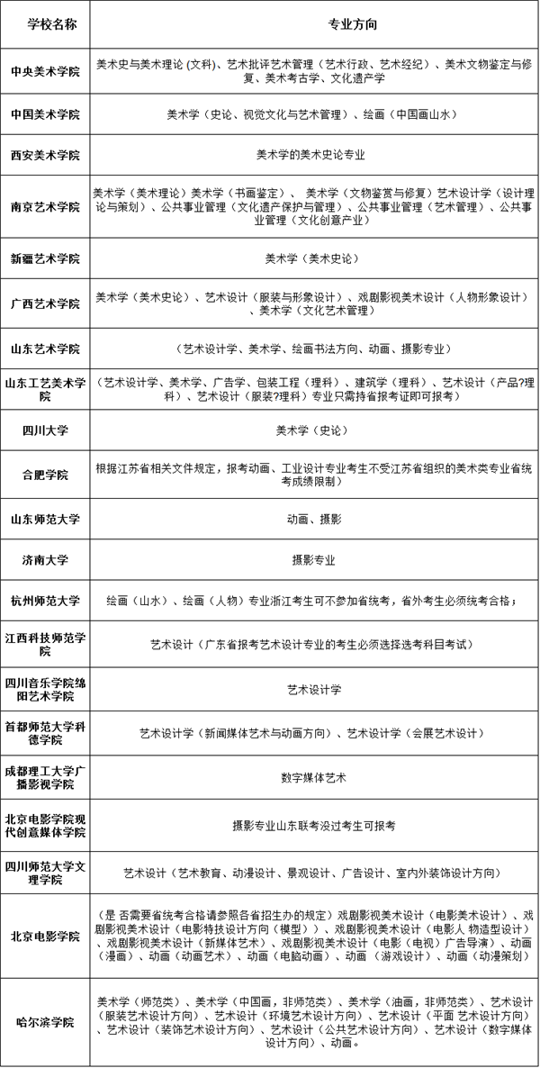 注:选择以下部分院校的动M业、美术史论、设计史论、摄影、学前教肌Ӏ照明艺术等专业不需l考合根{?