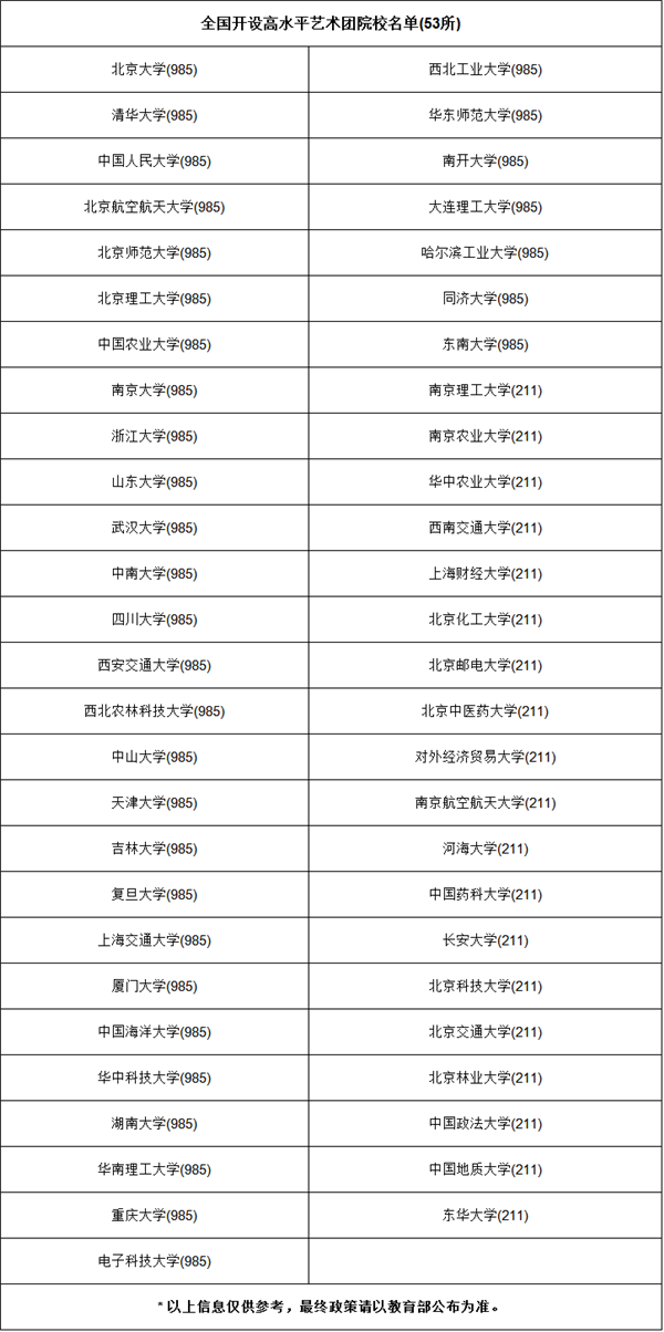 按照新通知Q全?3所高校的艺术特长生仍然可以招生Q但“艺术特长生”的叫法不再Q变成了53所高校的高水^艺术团招收特长生?