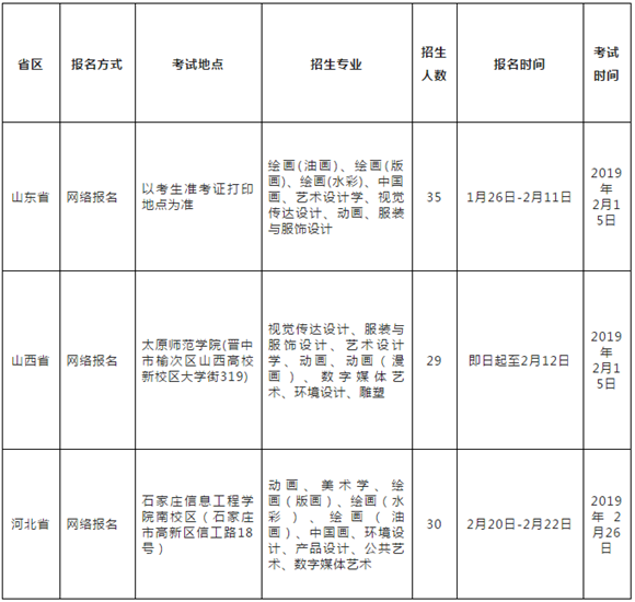 2019騫村唴钂欏彜鑹烘湳瀛﹂櫌鎷涙敹鍏ㄦ棩鍒舵湰縐戜笓涓?100浜恒傚叾涓潰鍚戝寳浜佸ぉ媧ャ佹渤鍖椼佸北瑗褲佸北涓溿佽窘瀹併佸悏鏋椼侀粦榫欐睙銆侀檿瑗褲佸畞澶忋佺敇鑲冦侀潚嫻楓佹柊鐤嗙瓑13涓渷甯傝嚜娌誨尯鎷熻鍒掓嫑鐢?61浜猴紝鎵鏈夋嫑鐢熶笓涓氬潎涓烘湰縐戜笓涓氾紝瀛﹀埗鍥涘勾錛屽悇涓撲笟瀛﹁垂鍧囦負7200鍏冣垥騫淬傞渶鐙珛璁劇疆鑹烘湳(鏂?鎴栬呰壓鏈?鐞?鎷涚敓璁″垝鐨勭渷浠斤紝鍙嫑鏀惰壓鏈?鏂?鑰冪敓錛屼笉闇鐙珛璁劇疆鑹烘湳鏂囩悊璁″垝鐨勭渷浠斤紝鎵鏈夎壓鏈被鑰冪敓鍧囧彲鎶ヨ冦傛枃鍖栦駭涓氱鐞嗗拰鑹烘湳鍙茶涓撲笟鍙嫑鏀舵枃鍙茬被鑰冪敓銆傚鏍℃嫑鐢熻鍒掍細鏍規嵁鐢熸簮鎯呭喌鍙婂悎鏍間漢鏁拌繘琛岃皟鏁達紝鍏蜂綋褰曞彇涓撲笟鍙婃嫑鐢熻鍒掓渶緇堜互鍚勭渷甯傞珮鎷涘姙鍏竷淇℃伅涓哄噯銆?