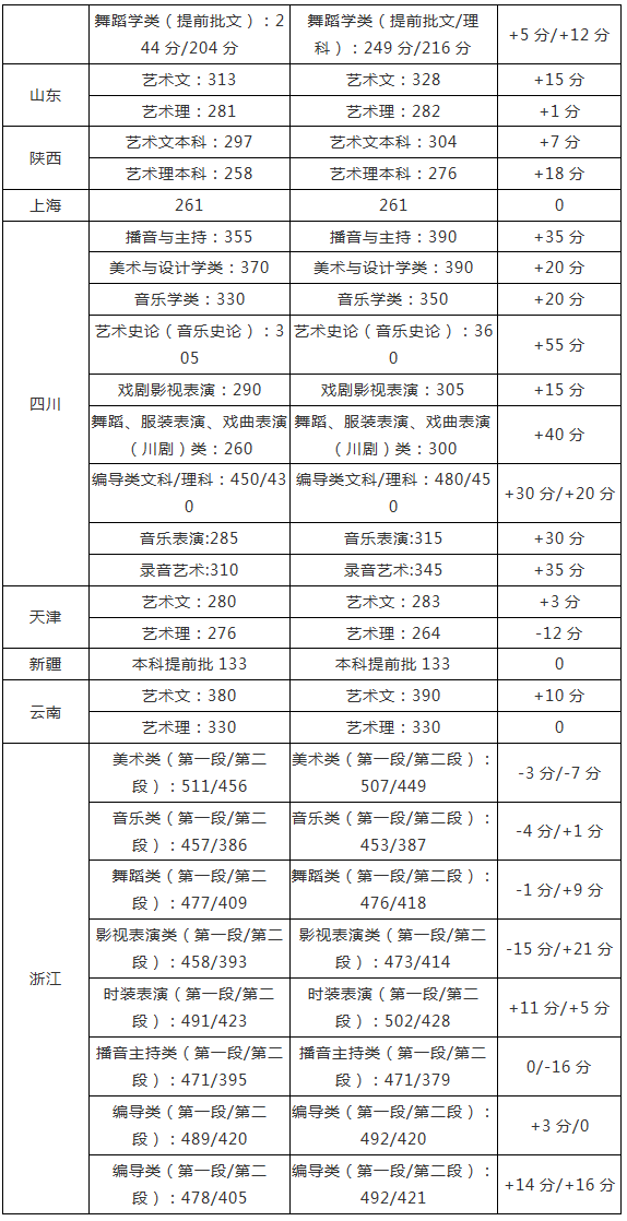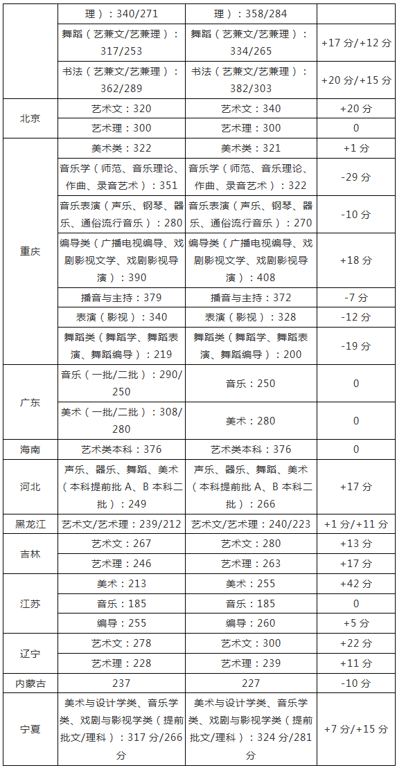 艺术cM?017-2018q各省市文化分提档线