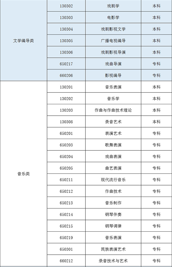 术文Q?”ؓ艺术?。编制招生计划时Q经教育部批准的部分独立讄的本U艺术院?含部分艺术类本科专业参照执行的少数高?的艺术类本科专业Q可不编制分省分专业招生计划(x源计?。除上述高校及相关专业外Q高校艺术类本科专业、所有高校艺术类高职(专科)专业Q均ȝ制分省分专业分科c?卌术文、艺术理)招生计划Qƈ参照附g明确各专业所属专业类别,附g中未늛的专业,相关高校M׃省教育招生考试院协商一致后Q确定专业所属类别?