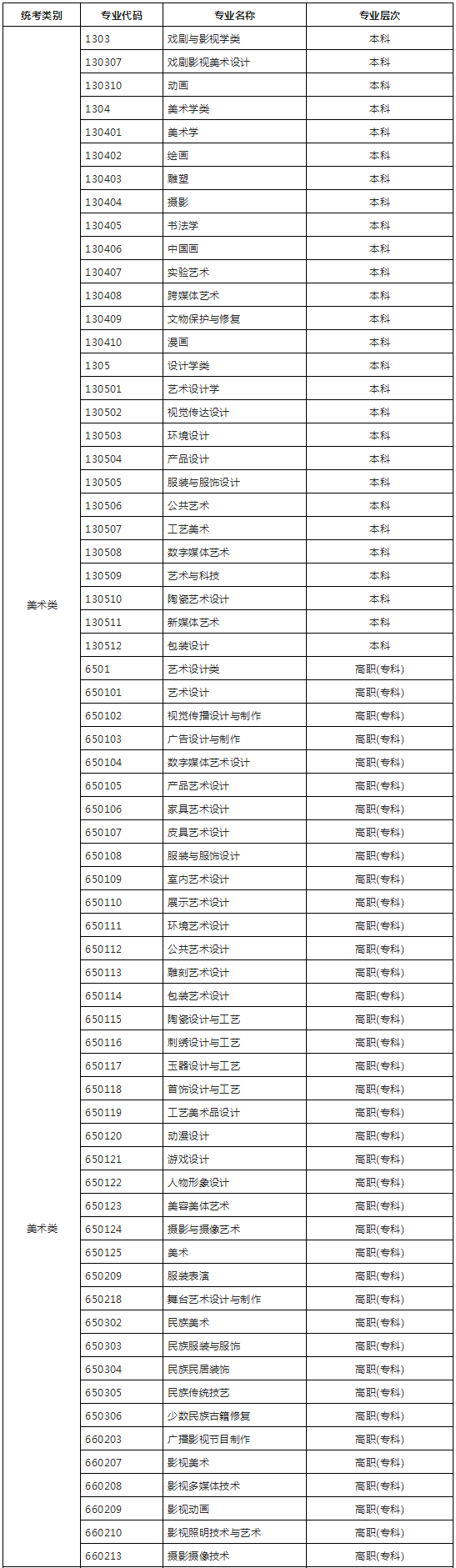 2020q开始,我省l考已늛的专业,高校一般应直接使用我省l考成l。确有必要补充考核的艺术类本科专业Q高校应面向我省相应cdl考合D生l织校考。高校应在本校艺术类专业招生办法中明告知考生d加我省统考的cd。若高校Ҏ省艺术类各统考类别对应的专业范围(见附?)持有不同意见Q应d与我院沟通,l双方协商一致后向社会公布。考生要按照校考高校相应要求报考?