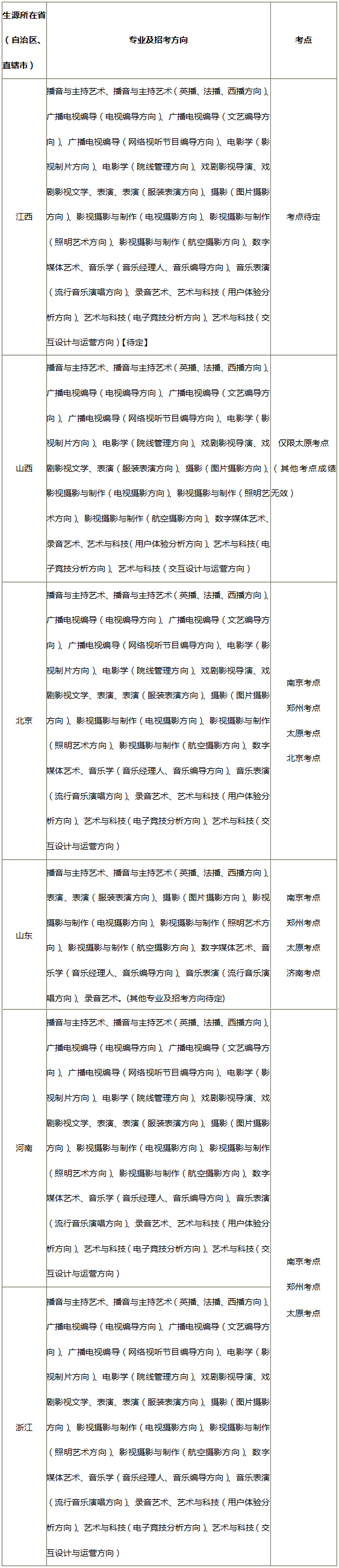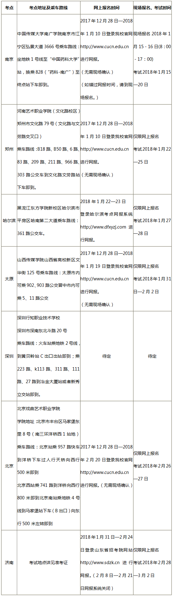(?2018 q我校艺术类专业考试在南京、郑州、哈滨、太原、深土뀁北京、济南设立校考考点;拟在南昌讄新考点?