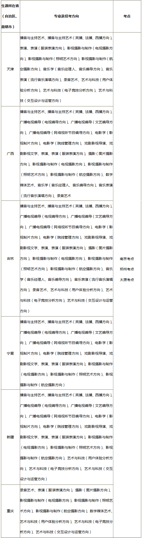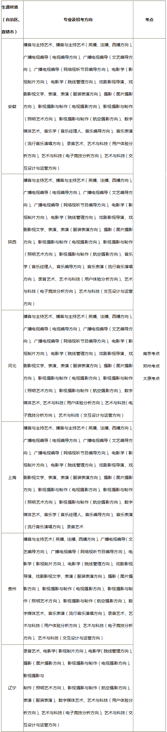 (? 误生对照下表Q了解所在省(自治区、直辖市)可以报考的专业及招考方向,q择对应考点报名考试?