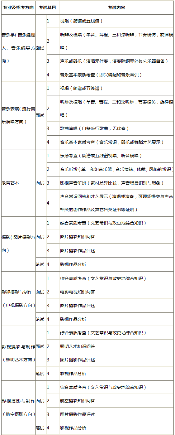 播音与主持艺术、播音与L艺术(英播、法播、西播方?、音乐学(音乐l理人、音乐编导方?、音乐表?span style="line-height:1.5;">(行音乐演唱方向)、表演、表?服装表演方向)、艺术与U技(用户体验分析方向)、艺术与U技(电子竞技?/span>析方?、艺术与U技(交互设计与运营方?{九个专业?/span>