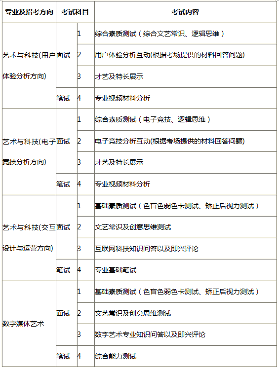 (?表演(服装表演方向)、数字媒体艺术、艺术与U技(交互设计与运营方?及播音与L艺术(英播、法播、西播方?四个专业在北京不设考,h考该专业的北