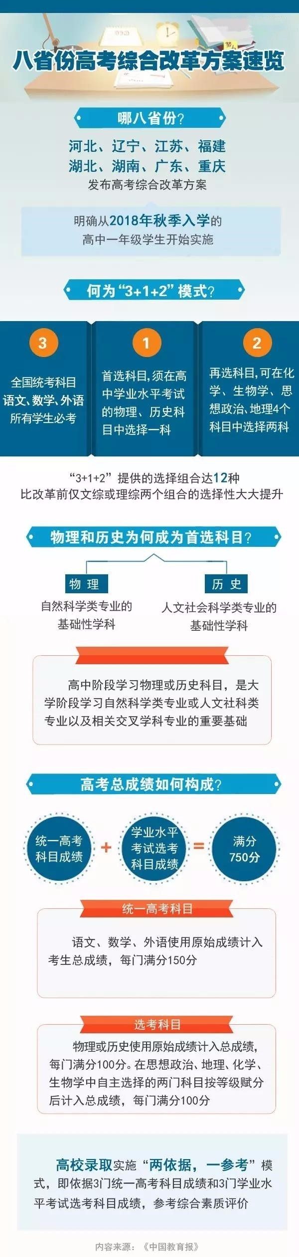 4?3日,作ؓ全国W三批启动高考综合改革试点的8个省市,沛_、辽宁、江苏、福建、湖北、湖南、广东、重庆发布本省市实施ҎQ明从2018q秋季入学的高中一q学生开始实施?