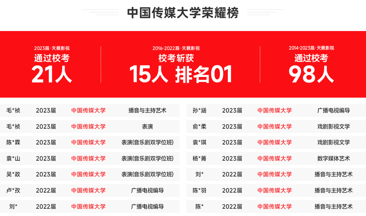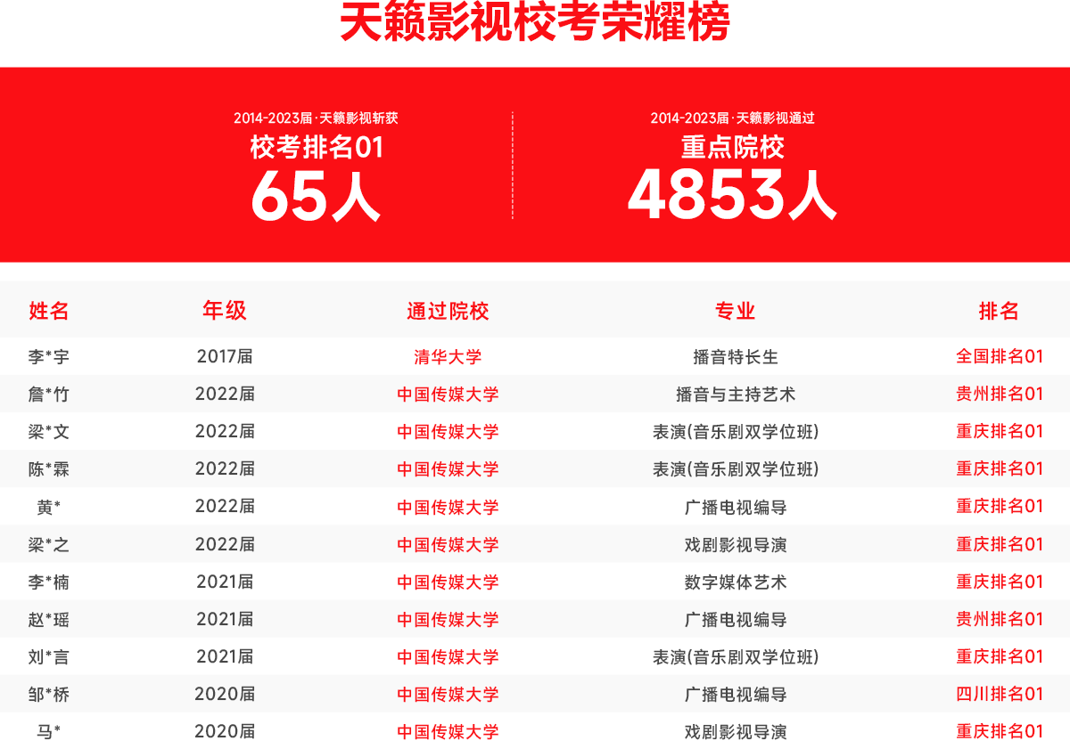 辦學至今,天籟以過硬的教學實力鑄就矚目成績,已累計培養10萬余名優秀藝術學子,幫助上千名播音學子進入理想院校。