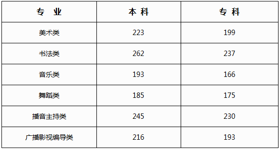 騫胯タ鍖?018騫存櫘閫氶珮鏍¤壓鏈被涓撲笟鐨勯氳繃鐢辨枃鍖栧垎鏁扮嚎鍜岃壓鏈被涓撲笟鍒嗘暟綰垮弻綰挎帶鍒訛紝鍏朵腑鏂囧寲鍒嗘暟綰挎寜鍚勪笓涓氬垎綾誨垝瀹氥?