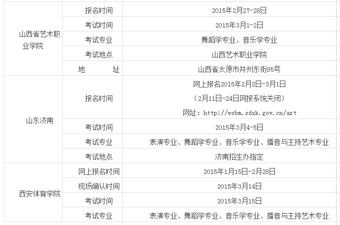 2015騫存垜闄㈠湪灞辮タ澶師錛屽北涓滄祹鍗楀拰瑗垮畨浣撹偛瀛﹂櫌璁劇珛鑹烘湳綾諱笓涓氳冭瘯鑰冪偣錛屽叿浣撹冭瘯鏃墮棿鍦扮偣濡備笅錛?