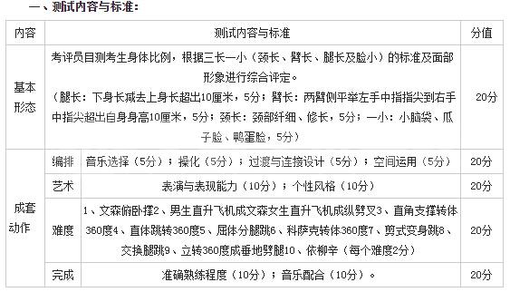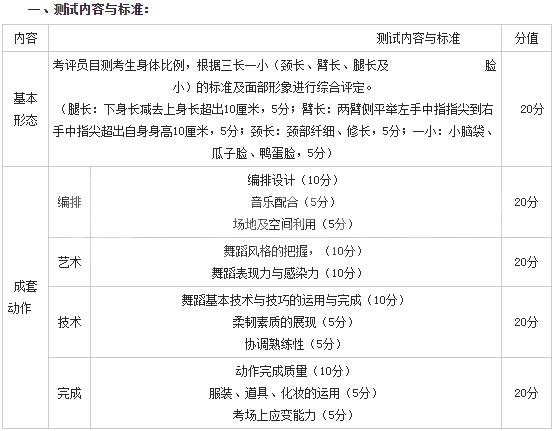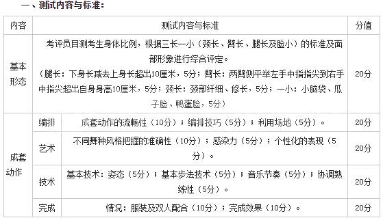 鑸炶箞琛ㄦ紨(浣撹偛鑸炶箞)銆佽垶韞堣〃婕?鍋ョ編鎿嶅惈鍟﹀暒鎿?銆佽垶韞堣〃婕?鑹烘湳浣撴搷)銆佽垶韞堣〃婕?鑸炶箞鍚皯鏃忚垶銆佸彜鍏歌垶銆佺幇浠h垶)鍥涗釜縐戠洰涓冪敓鍙彲閫夋嫨鍏朵竴,涓撲笟鑰冭瘯鍒嗗兼弧鍒嗗潎涓?00鍒嗭紝鍏朵腑鍩烘湰褰㈡?0鍒嗭紝鎴愬鍔ㄤ綔80鍒嗐?