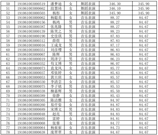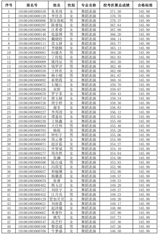 鏍規嵁銆婃暀鑲查儴鍔炲叕鍘呭叧浜庡仛濂?019騫存櫘閫氶珮絳夊鏍¢儴鍒嗙壒孌婄被鍨嬫嫑鐢熷伐浣滅殑閫氱煡銆?鏁欏鍘?[2018]13 鍙?鍙娿婂洓宸濆ぇ瀛?019騫磋〃婕旂被鏈鎷涚敓綆绔燵鑸炶箞琛ㄦ紨銆侀煶涔愯〃婕?澹頒箰)涓撲笟]銆嬬殑鐩稿叧瑙勫畾錛屾垜鏍′嬌鐢ㄨ冪敓鐨勭渷綰х粺鑰冩垚緇╁拰鎴戞牎鏍¤冩垚緇╂姌綆楀姞鏉冨悗褰㈡垚鈥滀笓涓氭繪垚緇┾濅負渚濇嵁錛屾寜鈥滀笓涓氭繪垚緇┾濅粠楂樺埌浣庢帓搴忥紝鍦ㄦ暀鑲查儴瑙勫畾鐨勭‘瀹氭牎鑰冨悎鏍間漢鏁扮殑姣斾緥鑼冨洿鍐咃紝鎷╀紭紜畾鏍¤冨悎鏍煎悕鍗曘傜幇灝嗗悎鏍煎悕鍗曞湪鏈綉绔欎簣浠ュ叕紺?鍚嶅崟瑙侀檮浠?銆?
